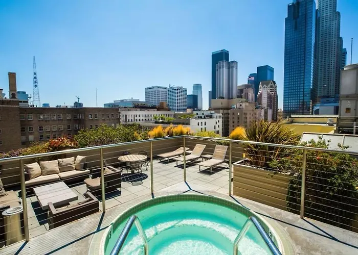 El Historic Downtown La Loft - Urban Charm Los Ángeles se encuentra a aproximadamente 25 minutos andando del Placita Olvera y a unos 5 minutos andando de la estación de metro 7th Street Center. El apartamento de 74 m² ofrece vistas al jardín y cuenta con un patio.